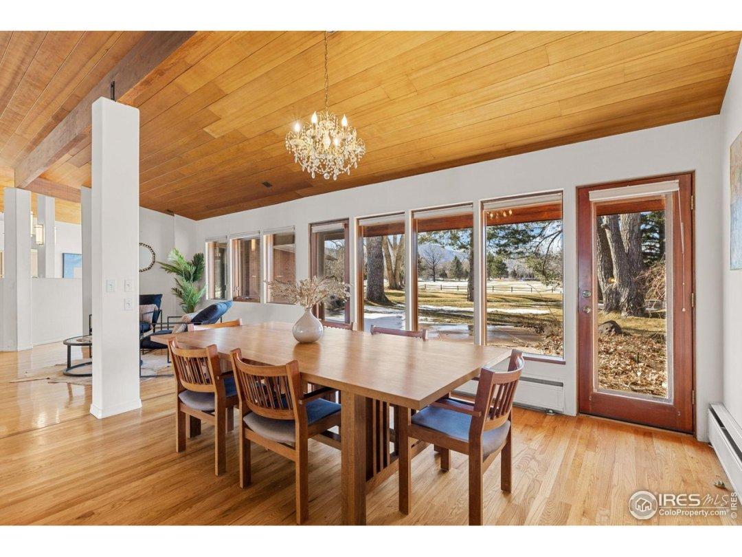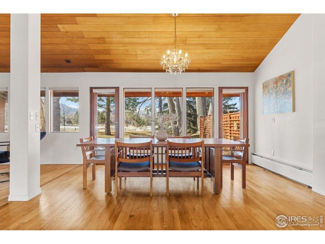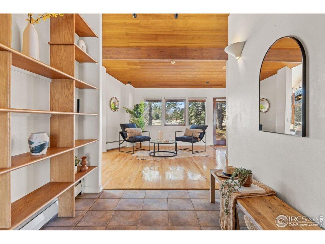 Tucked away on a serene acre at the end of a private cul-de-sac, 1193 Old Tale Road is a rare sanctuary where timeless mid-century design meets Boulder's most breathtaking natural landscapes. Backing directly onto Flatirons Golf Course, the home offers panoramic views of the Flatirons and Continental Divide-an ever-changing canvas of glowing sunsets, snow-dusted peaks, and mountain majesty. A warm brick-and-wood facade is framed by vibrant landscaping, setting the tone for the home's refined yet welcoming style. Inside, soaring vaulted ceilings, tongue-and-groove details, and rich hardwood floors anchor a dramatic great room that balances mid-century character with modern livability. Designed for both lively entertaining and quiet retreat, the home flows seamlessly into its surroundings. The primary suite is a true haven, offering serene views, skylights, an attached en-suite, and direct access to the tranquil backyard. With four bedrooms and dual offices or flex spaces, this ranch-styGeneral Features