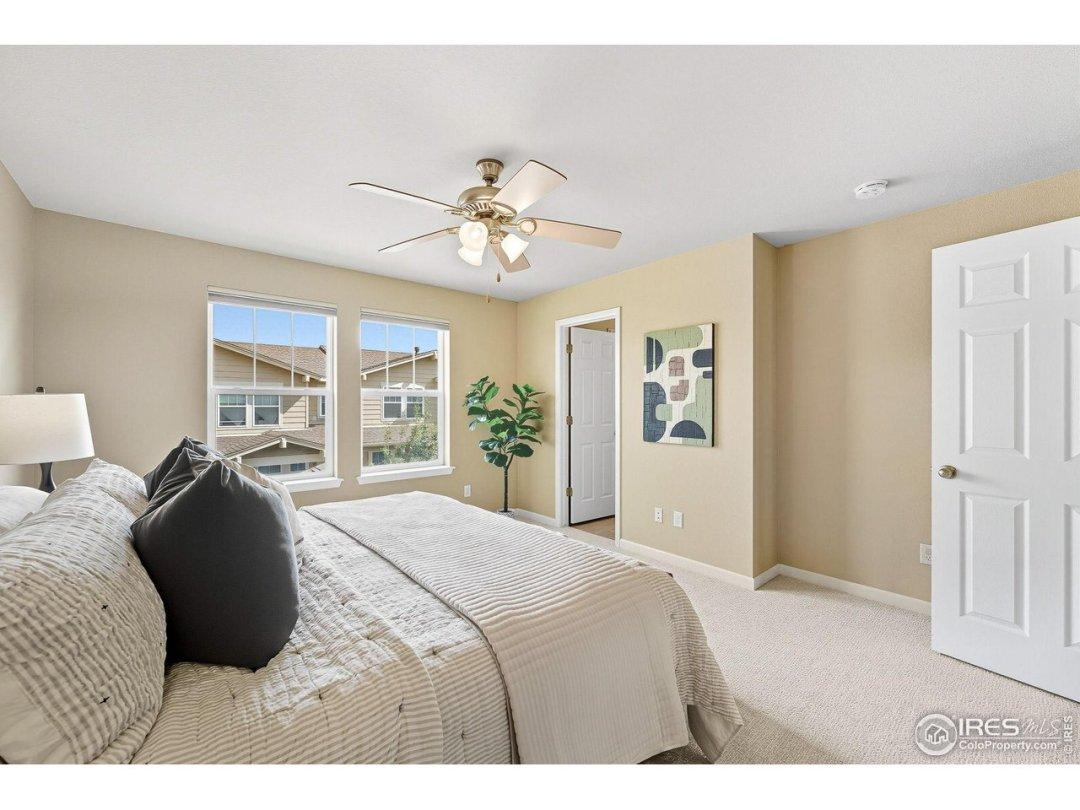 RENAISSANCE NEIGHBORHOOD - Low-Maintenance Townhome Living in Southwest Longmont. Brand new interior paint throughout and new carpets installed. Living Room fireplace. Private East-facing Covered Deck. Eat in Kitchen Bar. Oak hardwood floors & Alder Cabinets. Upstairs features 2 En-suite Primary Bedrooms. Attached 2 car garage with additional storage space. Community trail/path just outside to the south and great amenities ~2 blocks north. YES!General Features